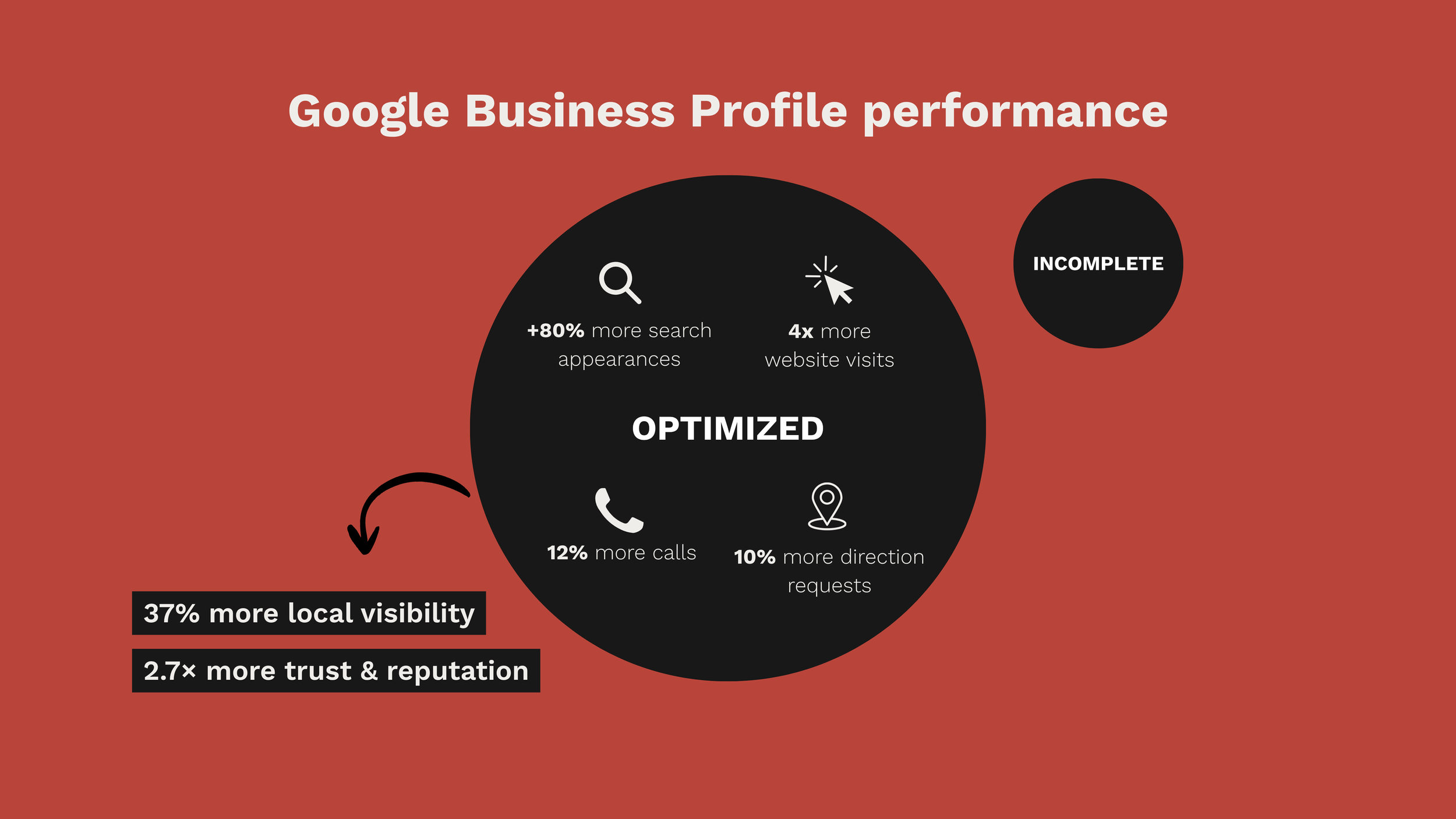 The numbers don’t lie: a fully optimized Google Business Profile can boost visibility, engagement, and conversions like nothing else. Photos, reviews, messaging, local SEO — every detail counts, and even small tweaks can make a huge difference.